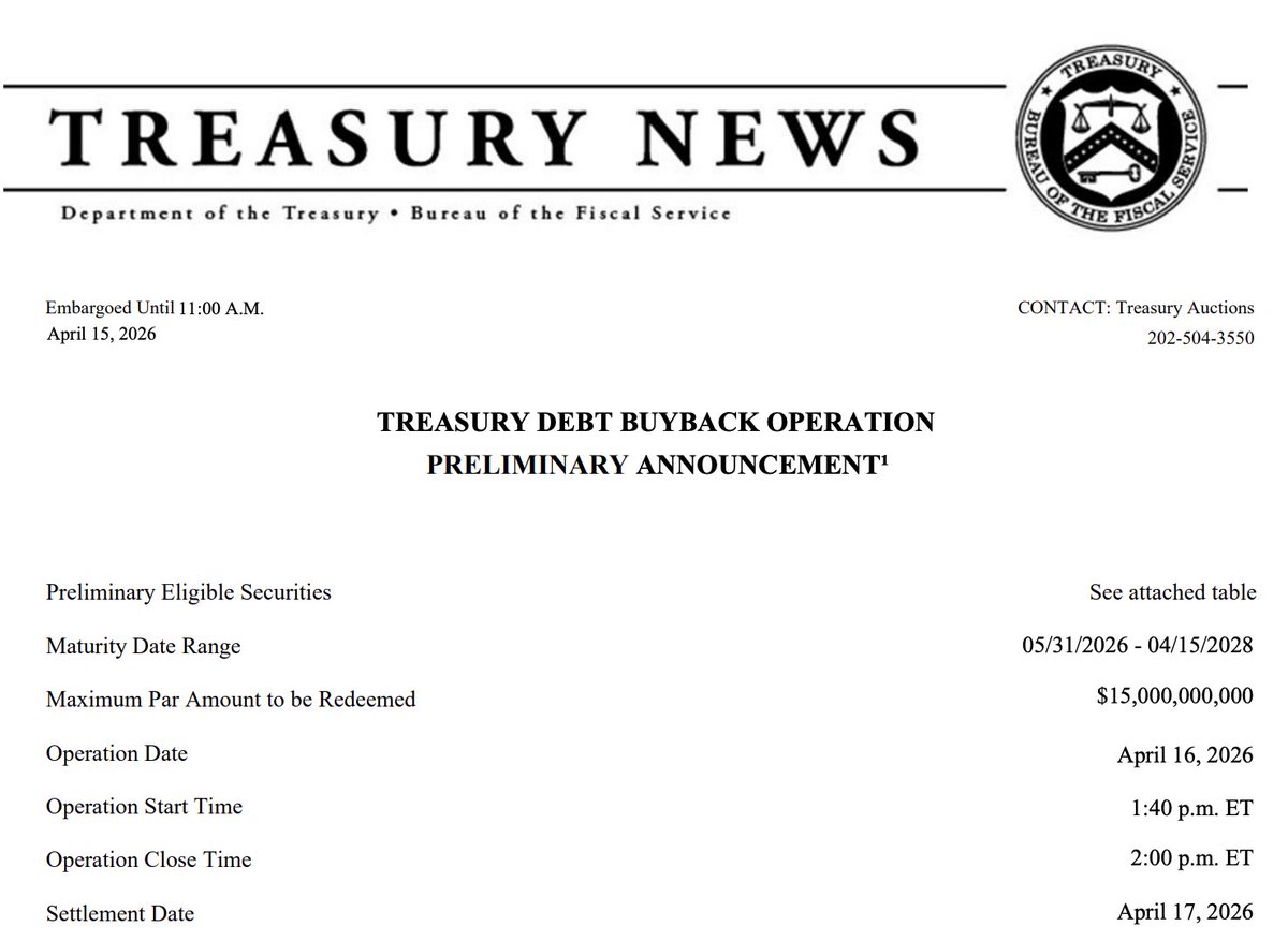 The U.S. Treasury is expected to buy back $15 billion of its own debt this week, marking the largest such buyback in history.