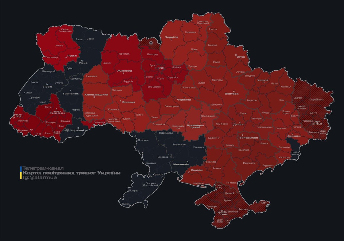 Air raid alert across most of Ukraine Monitoring channels report 8-10 groups of...