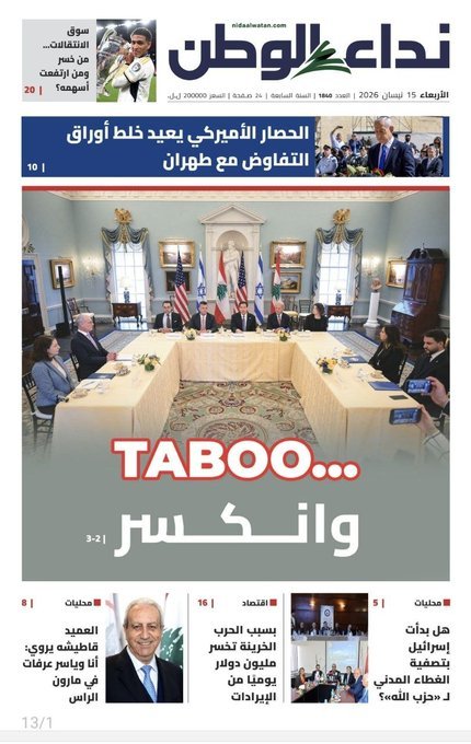 Lebanese media headlines this morning starkly illustrate the country's political divide over recent US-mediated talks with Israel. The anti-Hezbollah newspaper Nidaa' al-Watan declared a 'Taboo... broken,' framing the diplomatic engagement as a significant shift. In contrast, the Hezbollah-affiliated Al-Akhbar condemned the move, labeling it 'The government of shame bows down in Washington.' This media split mirrors the broader political and social rift within Lebanon over the government's foreign policy direction and Hezbollah's role.